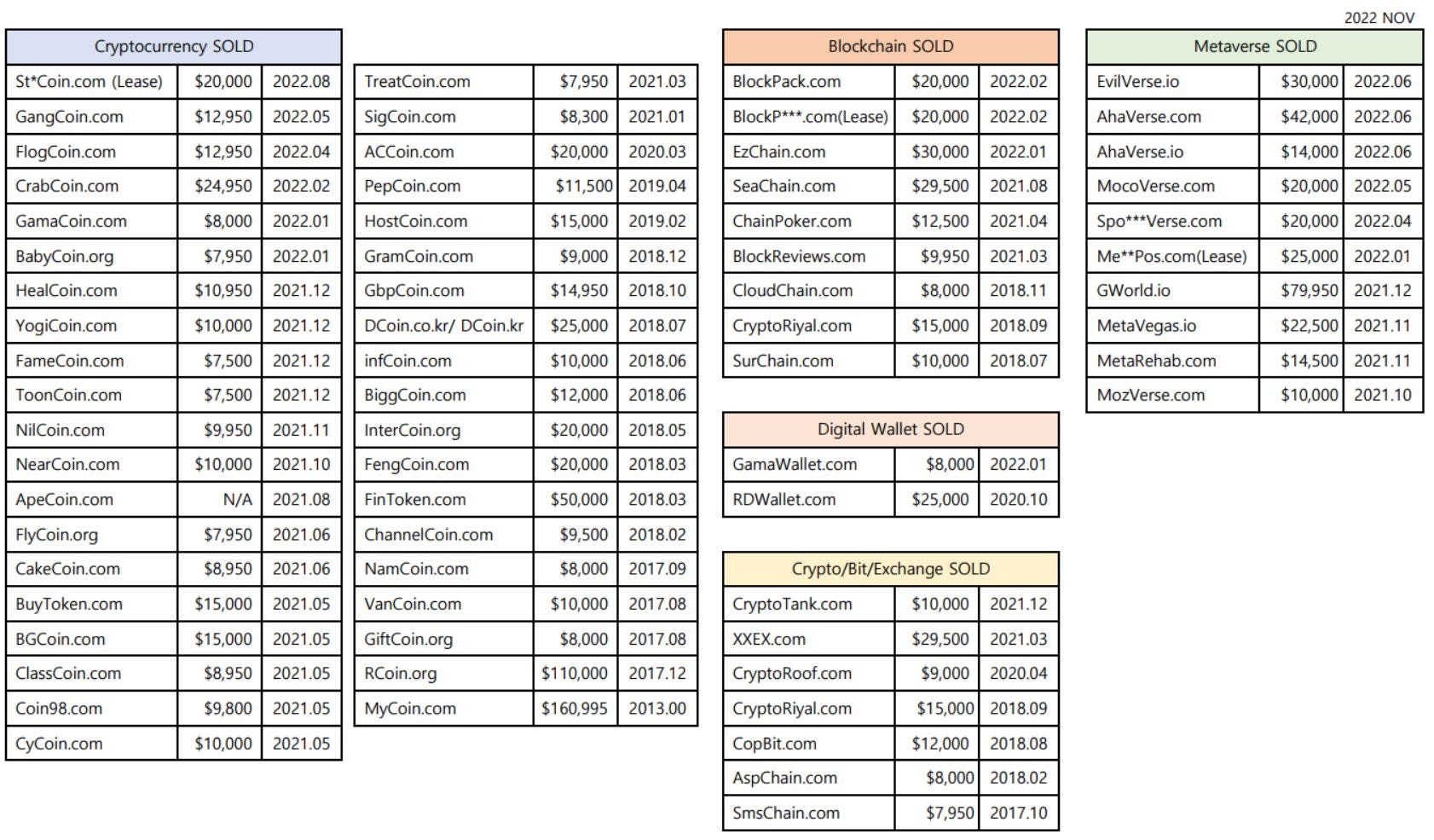 Crypto / blockchain / metaverse domain sales prices