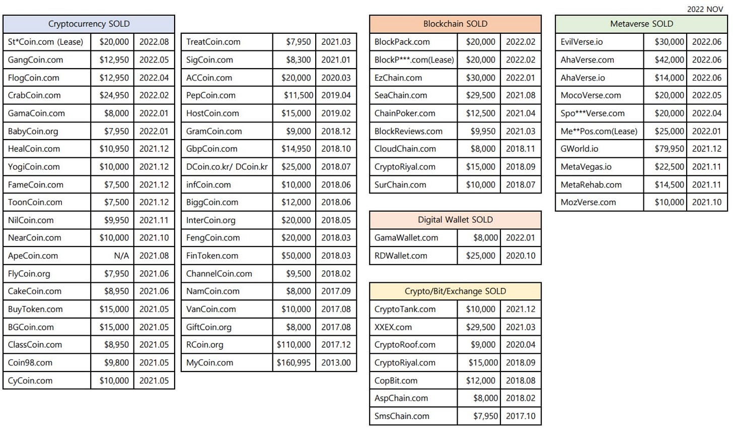 If you’re wondering what crypto domains are selling for right now, James Kim just put out a super valuable tweet showing all his sales from 2017 to right now: