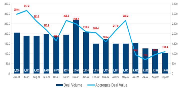 Traditional mergers & acquisitions activity continues its steady decline, both in deal volumes and values.